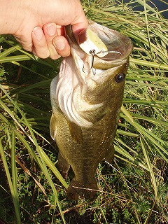 ウィードがポツポツと絡む中層を泳がせていると、ドンッ!と太いアタリがありました。