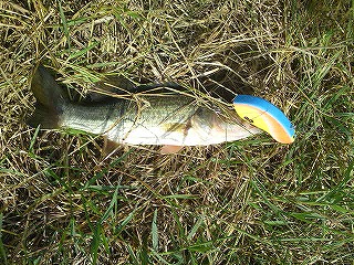 「アシの際を通したらヒット!!!! サイズ48センチ、ボテボテです。 バス釣りを始めて2年、最高のドラマでした。」 |