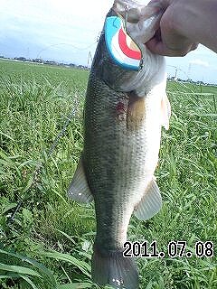 「長年行きよります水路でクソ暑い中、幅が約50センチ程の小さな小さな水路というか溝からどぶぁ〜って出ました。ビックラこきました。梅雨の増水してる時期にしか出来ない期間限定のバス君でーす。惜しくも1cm足らずの49でした。」 |