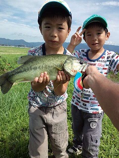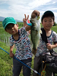 わざと子に網でスクワセてお手伝いをしてもらい、次男は初バスを、ちゃんとつかみ、激写。 続いてあと1本入ってるだろう予想も的中し、サイズアップ成功。 40と44ですが、プリプリのナイスコンディションバスちゃんでした。 さっきまでウダウダ言ってた子は網ですくえたり、バス持ったりで興奮してました。 してやったり!帰りの車中で『パパ!今日は楽しかったね』と感無量なお言葉を頂きました。釣りの楽しさを、子からまた教えてもらえました。」 |