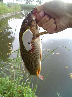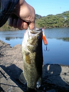 「水草の繁茂する中に投げてとろとろ引いてきたら出ました。 釣った池はワームも使えないほど水草だらけなのですが、リップが無くてダブルフック、それと浮力でほとんど引っかからずにひけました。」 |
