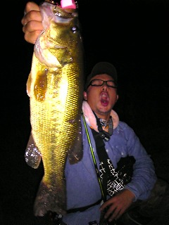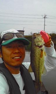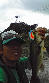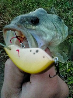 「昨年のバサーオールスターOPAカラーで39です。 水が白く濁った菱藻だらけの池ですが、狙い通りの金と青の明滅が効いたんだと思ってます。」 |