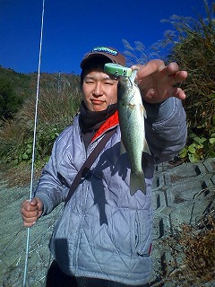 「ちっちゃいけど何とか釣ったよー!宣言した通り一番乗りかな」
