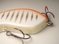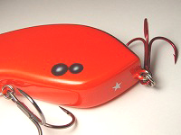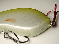 琵琶湖では春時期、朱系の赤色に強く反応するタイミングがあるそう。 そんな話を聞いて、ならばと忠実に再現してみたカラー。 実際に試してみると、低地のザリガニが多い釣り場では確かに反応が良く、おのずと糸に結ぶ機会が多い。